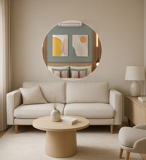 Our round frameless mirror instantly elevates any room’s decor. It introduces a touch of minimalist sophistication to your home. Consequently, your space feels significantly brighter and more expansive. This mirror is not just a reflective surface. Instead, it is a statement piece designed to be a focal point. It beautifully blends modern design with timeless elegance. This piece captures light and attention from every angle. It creates an atmosphere of refined luxury.