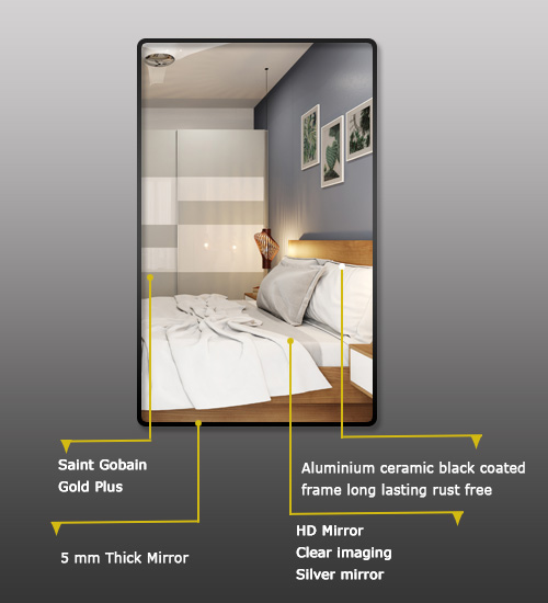 We craft our mirrors from premium materials. Enjoy a crystal-clear reflection every time. We source the 5mm thick mirror from Saint Gobain or Gold Plus. This ensures a high-definition, distortion-free experience. The mirror is also silver-coated for enhanced longevity. Therefore, you can expect superior performance for years.